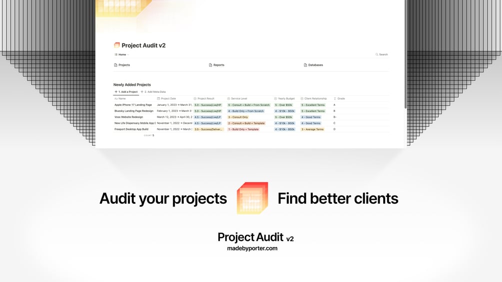 For freelancers & solopreneurs who need to audit their past projects. This audit helps you understand the question "What are my best projects?".